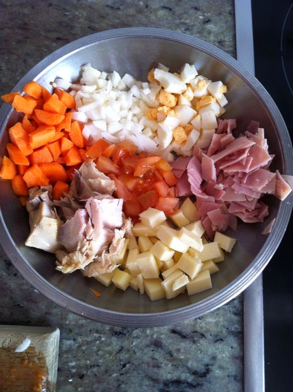 Como aliño, he utilizado simplemente mayonesa. Pero también podréis aliñarla con aceite y vinagre.