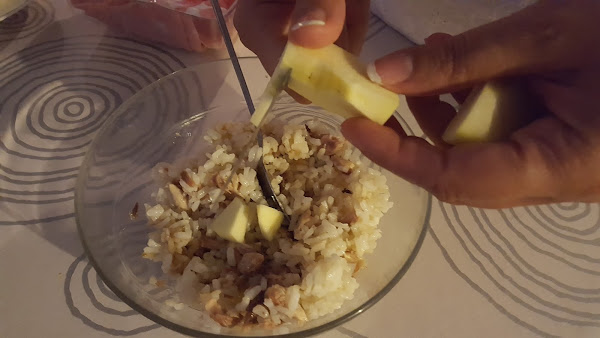 3.- Añadimos el arroz blanco y lo mezclamos.
