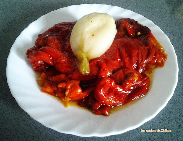 Preparación:Asamos en el horno los pimientos y las cebollas, durante unos 40 minutos a 180 grados.