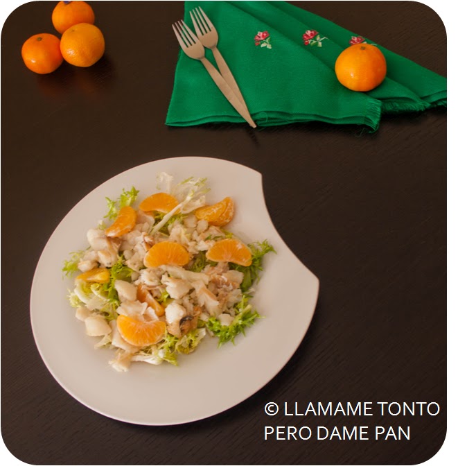 El dulzor de la mandarina, con el contraste de la vinagreta y el toque salado del bacalao, hace de esta ensalada toda una delicia.