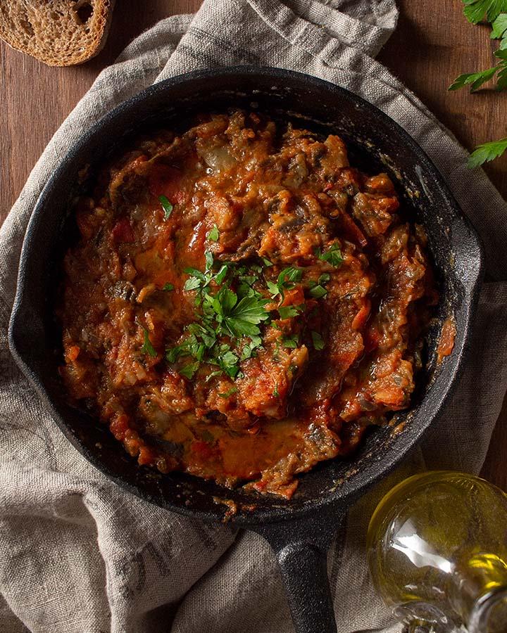 Ensalada de Berenjena Marroquí o Zaalouk. Otra receta vegana deliciosa para caer rendido ante los sabores y aromas de la gastronomía de este país.