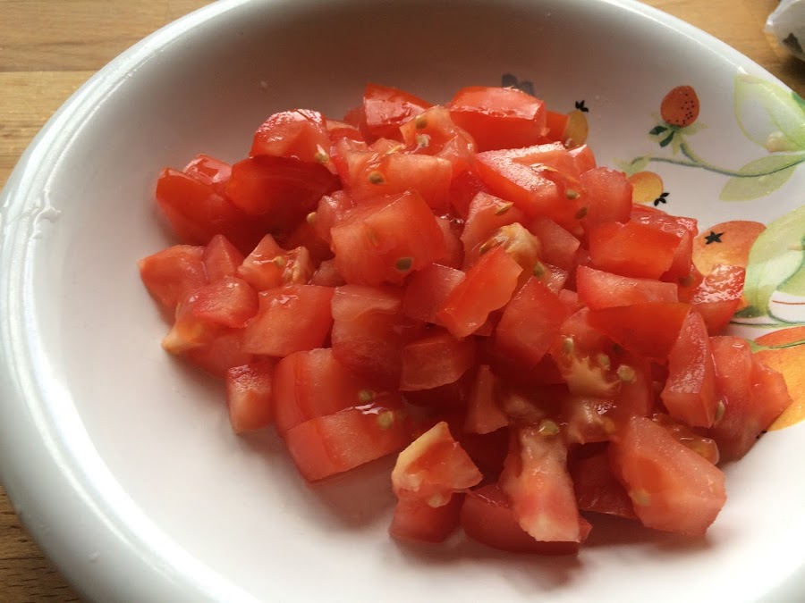 Pelamos los tomates y cortamos en cuadraditos pequeños.