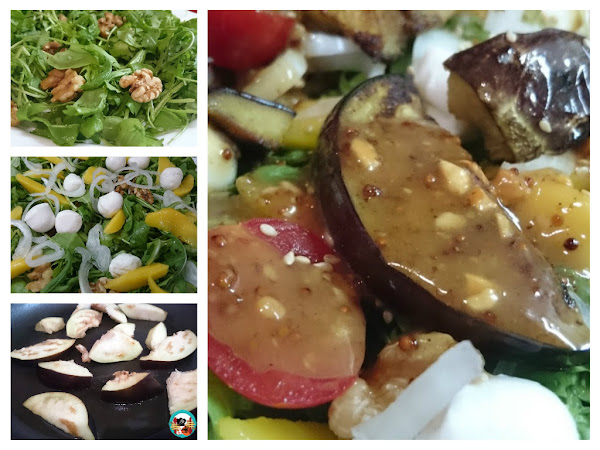 Esta ensalada de berenjenas tiene unos sabores vibrantes con contrates de sabores agridulces que conquista los paladares de los más exigentes...También es un rico plato, cargado con las nutrientes y vitaminas que nuestro cuerpo necesita cada día para regenerarse y combatir los radicales libres.