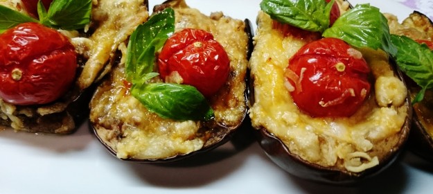 Berenjenas rellenas de vacuno y gratinadas.