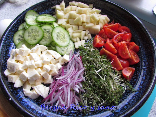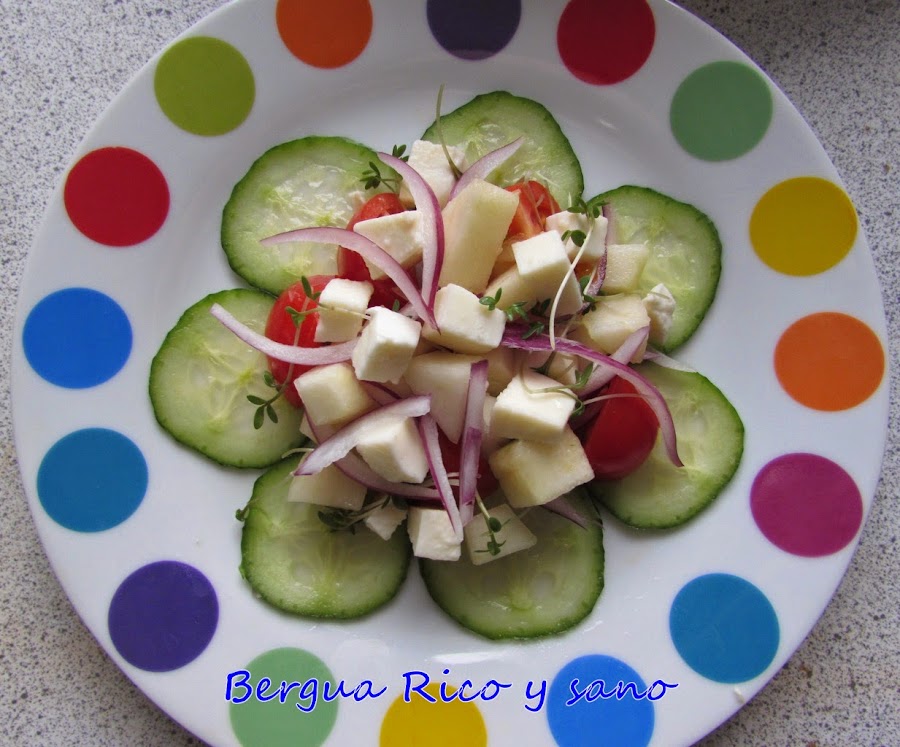 El otro día me dijo un uruguayo que en España se come muy bien, pero que somos poco originales con las ensaladas. Y le tuve que dar la razón. Porque si bien existen bastantes tipos de ensaladas a lo largo de la Península, la que más se come a diario es la de tomate y lechuga. Pero ¿qué hace la gente como yo, a la que más bien no le gusta la ensalada de lechuga? Pues para eso está la imaginación =)