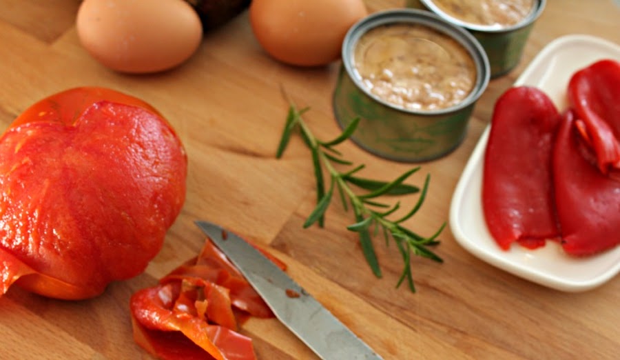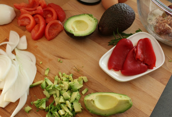 Mezclamos en un bol grande junto con el atún y el pimiento rojo.