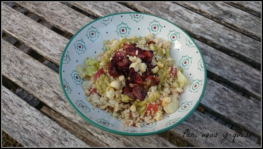 La primera vez que preparé este cereal en ensalada me sobró la mitad de lo que había cocinado, así que añadí un par de ingredientes y comimos un plato riquísimo.