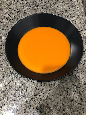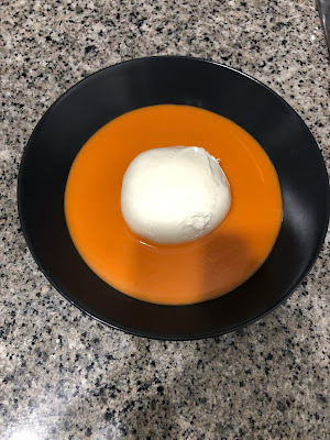 1. - Vertemos el vaso de salmorejo en un plato hondo.