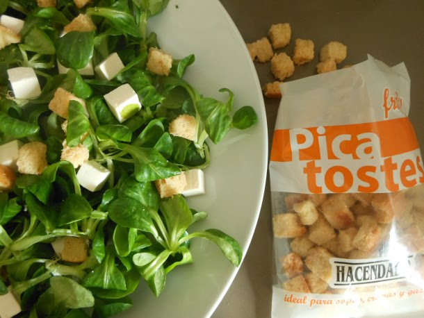 Termina añadiendo los costrones de pan, de esta manera, el pan no se nos empapará con la vinagreta y quedará más crujiente.