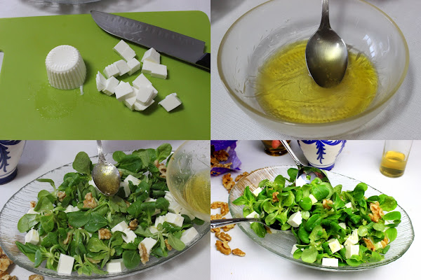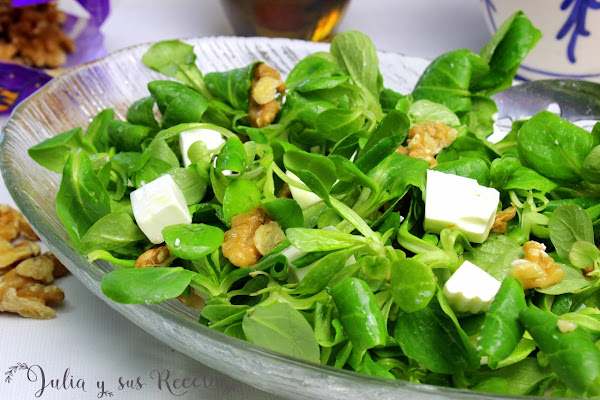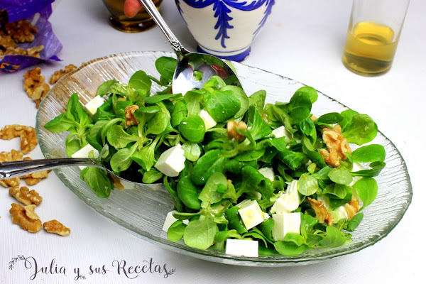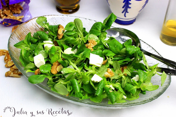 Si quieres una ensalada rápida, sencilla y con pocos ingredientes, pero muy sabrosa, ésta es tu ensalada. Ensalada de canónigos con queso y nueces.