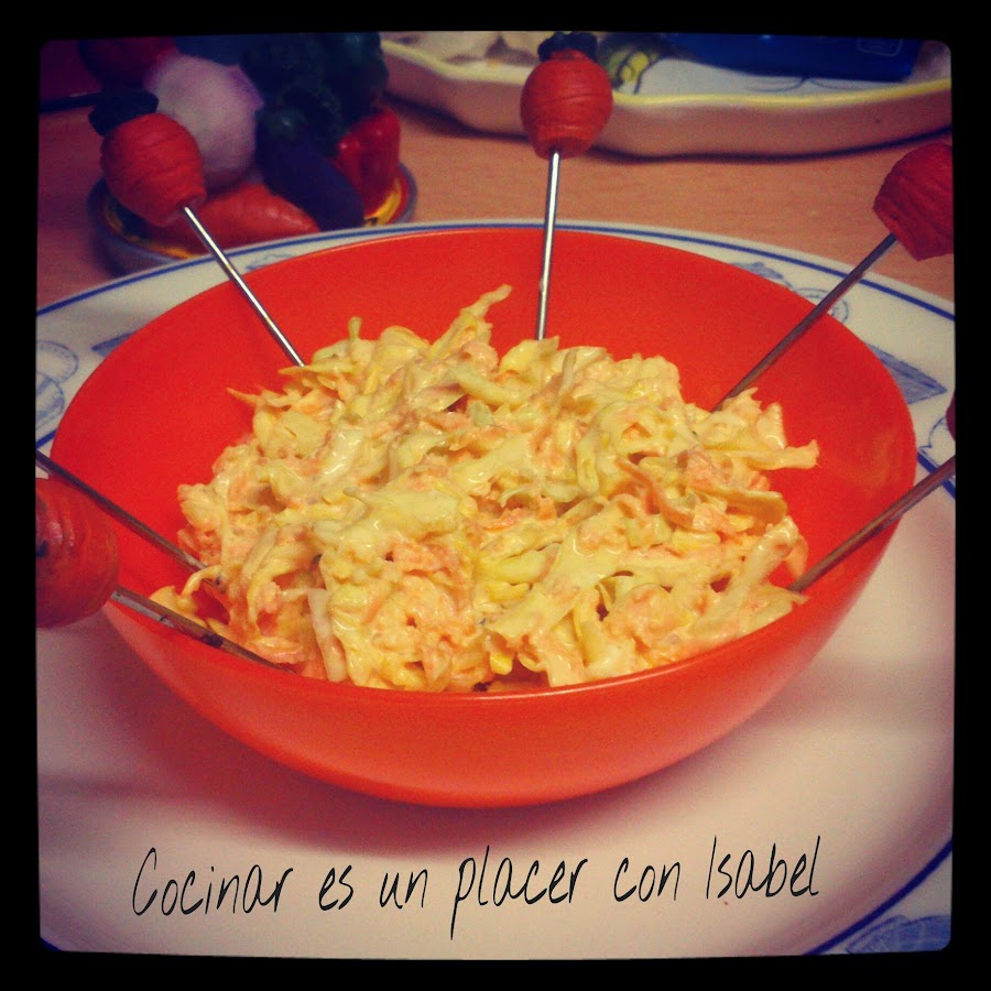 Esta ensalada de col te la suelen poner de acompañamiento con las hamburguesas en estos establecimiento de comida americana , y la verdad que a mi siempre me han gustado ,así que me puse a ello en casa y el resultado no ha estado nada mal , espero que lo probéis a hacer en casa y espero que os guste el resultado.