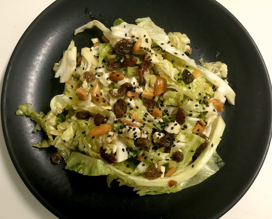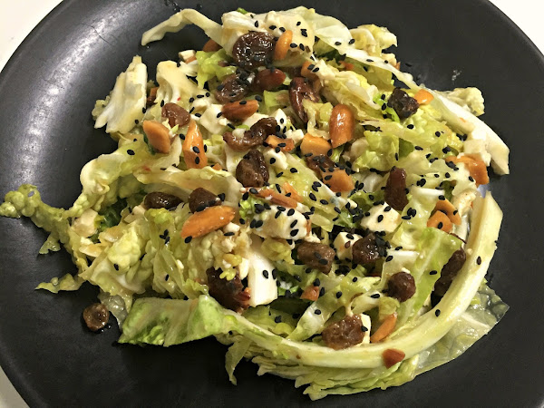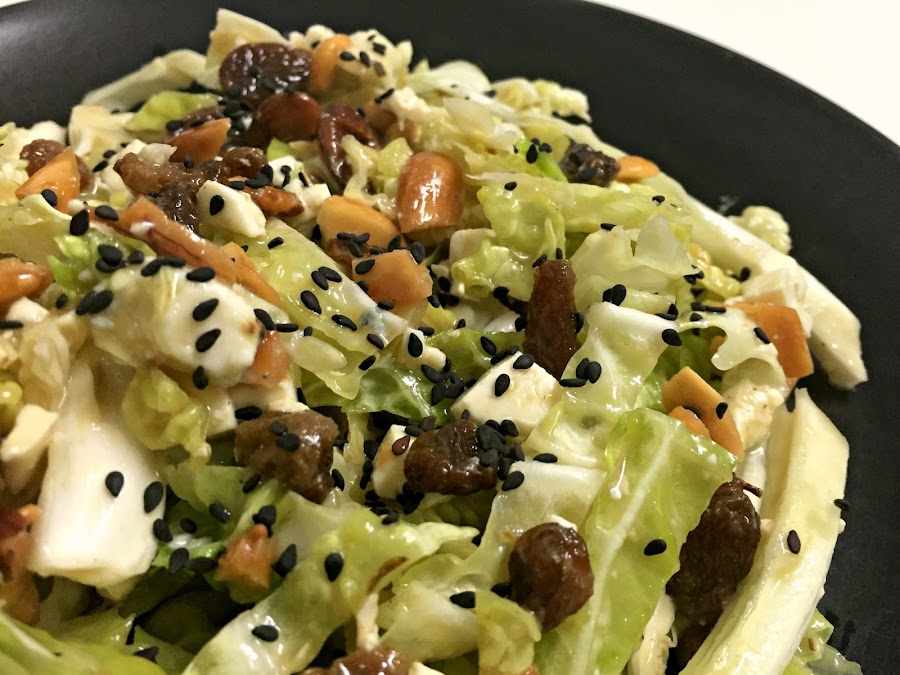 Hace tiempo que no publicaba una receta que no fuera vegana pero ya era el momento.Esta ensalada está buenísima, es una combinación muy sana y crunchy y al ser en crudo, la col es muy saciante! Y que decir que solo 1/4 de col rinde muchísimo :)