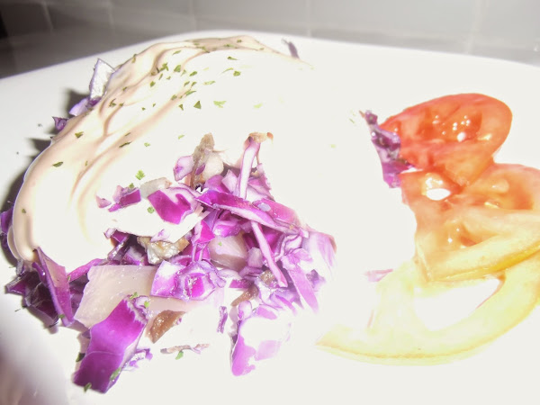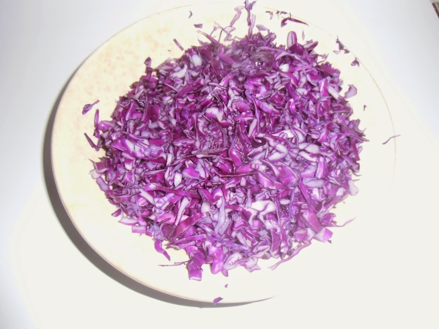 Lavamos y cortamos la lombarda en laminas cortas y muy finas