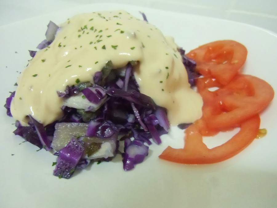 Listo. Emplatamos y le ponemos la salsa por encima o a un lado acompañando la ensalada y decoramos con perejil picado.