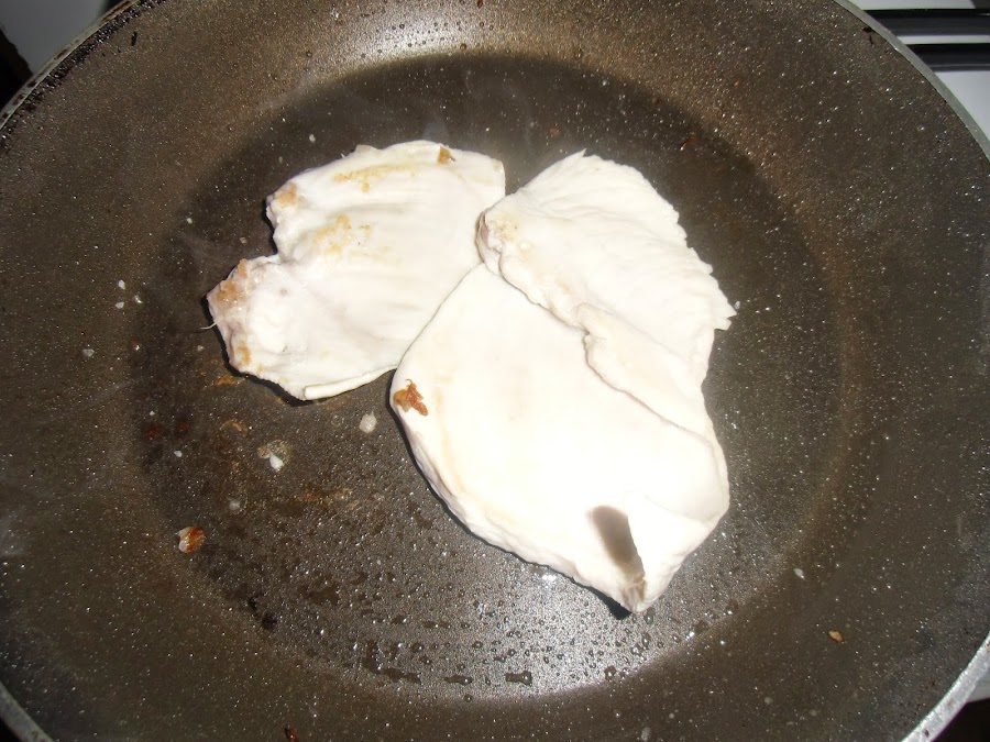 Hacemos lo mismo con el pollo, lo cortamos a trozos y lo añadimos al bol.
