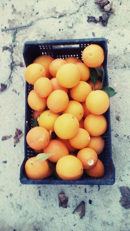 Luego vamos a añadir naranja, como veis esta ensalada no tiene nada y es bien sencilla, por lo que es esencial que los productos que elijamos sean de buena calidad. Yo las naranjas las he traído directamente de la huerta a la mesa, son ecológicas cien por cien, sólo agua y mucho mimo, cortesía de mi chico.