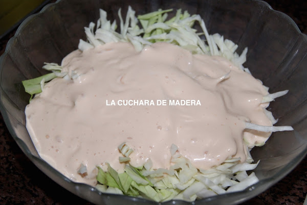 Hacemos la salsa rosa, dependiendo del gusto más cantidad, pero no debe ir con mucha