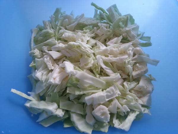 Es muy fácil de preparar, y conviene hacerla unas horas antes, para que la col vaya cogiendo todo el sabor y se ablande un poco, ya que va en crudo, pero con el aliño y el vinagre, se va "cociendo" un poco con el tiempo, y creo que os sorprenderá.