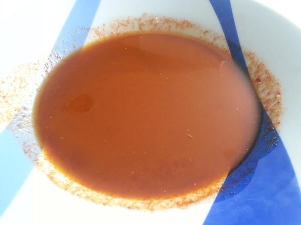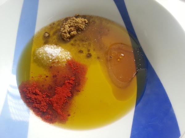 3. - Por otro lado mezclamos el aceite, el vinagre, la sal, el comino y el Pimentón y mezclamos.