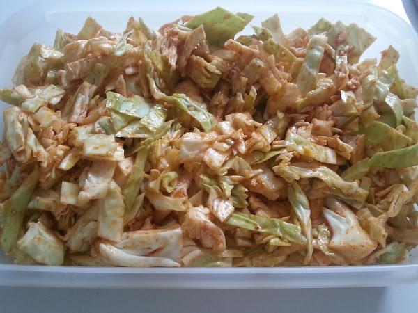 4. - Añadimos la mezcla a las coles, mezclamos bien y dejamos reposar en la nevera un par de hora al menos.