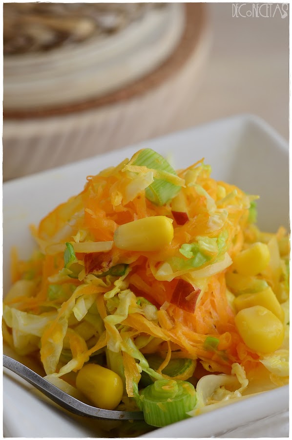 Desde hace pocos meses he descubierto la col como una de mis verduras imprescindibles en la nevera sobre todo para hacerla con salteados. Esta vez la hice en ensalada y no me arrepiento para nada