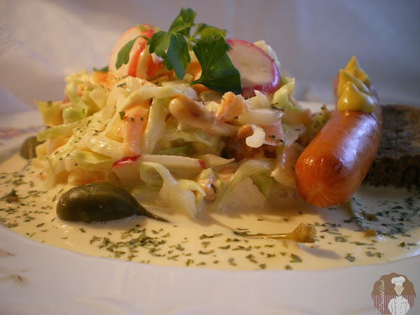 Aunque lo más habitual para acompañar a las jarras de litro repletas de cerveza sea el halb Hendl, es decir medio pollo asado y los clásicos bretzel , también tienen cabida otros platos regionales como el que nos ocupa hoy: la Krautsalat, una ensalada de col que muchos de vosotros ya conoceréis por su nombre anglosajón, Coleslaw.