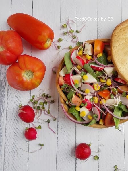 7- Montamos la ensalada con los ingredientes que tengamos a mano y servimos.