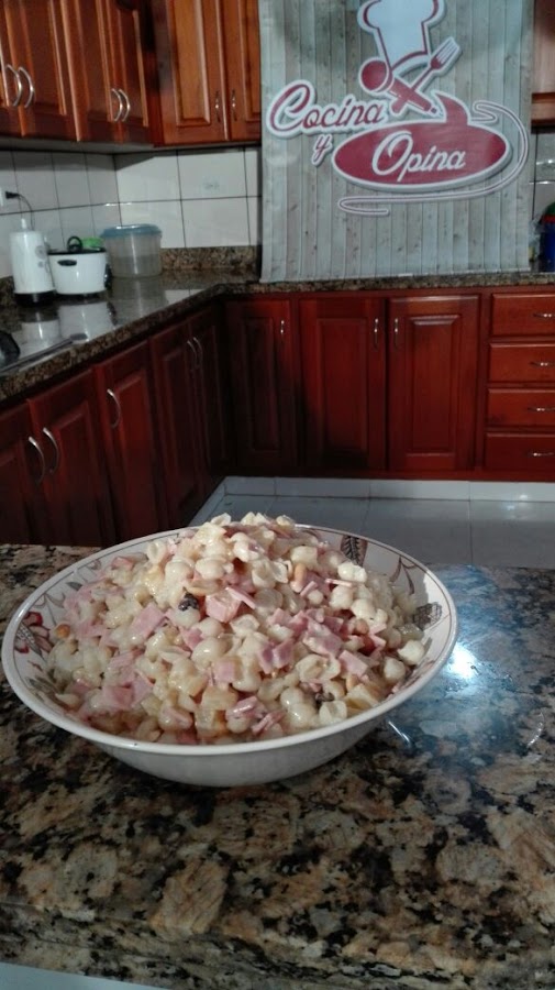 500 g pasta de coditos o conchitas, preparados según las instrucciones del paquete, deben estar frías al momento de la preparación.