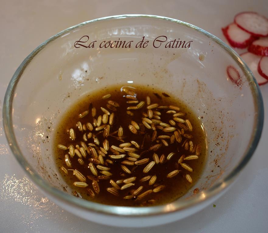 Removemos el aliño, lo vertemos sobre la ensalada y servimos.