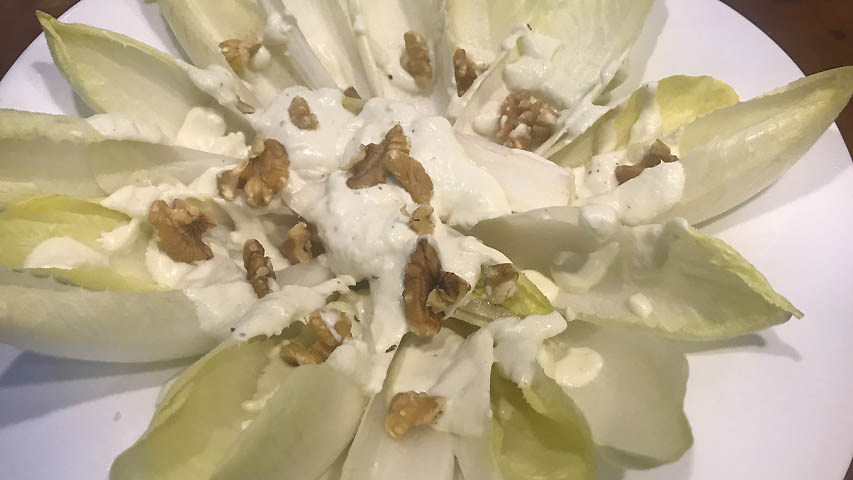 Sazona las endivias y vierte la salsa sobre ellas a tu gusto.