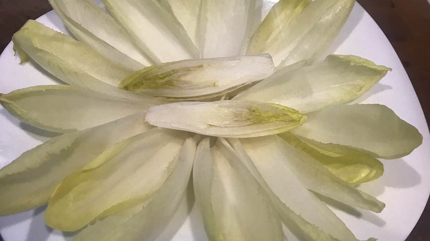 Retira las hojas de las endivias y disponlas a tu gusto en una fuente.