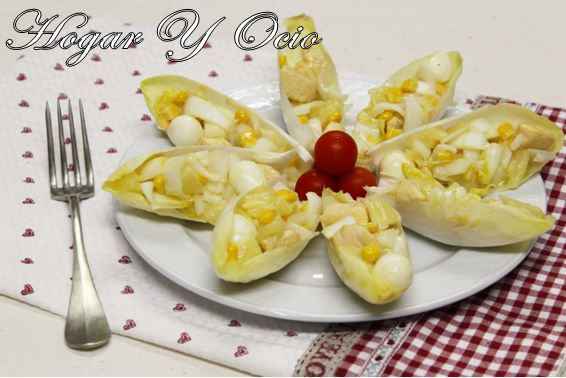 Como curiosidad, podemos encontrar la palabra endivia escrita con "b" o "v", el diccionario de la Real Academia acepta las dos formas y defiene a este vegetal como "variedad lisa de escarola, de la que se consume el cogollo de hojas tiernas y pálidas". Y como llegado este punto ya estaréis hartitos de leerme os dejo con la receta y con la promesa (léase amenaza) de volver a publicar ensaladas antes de que termine el invierno.