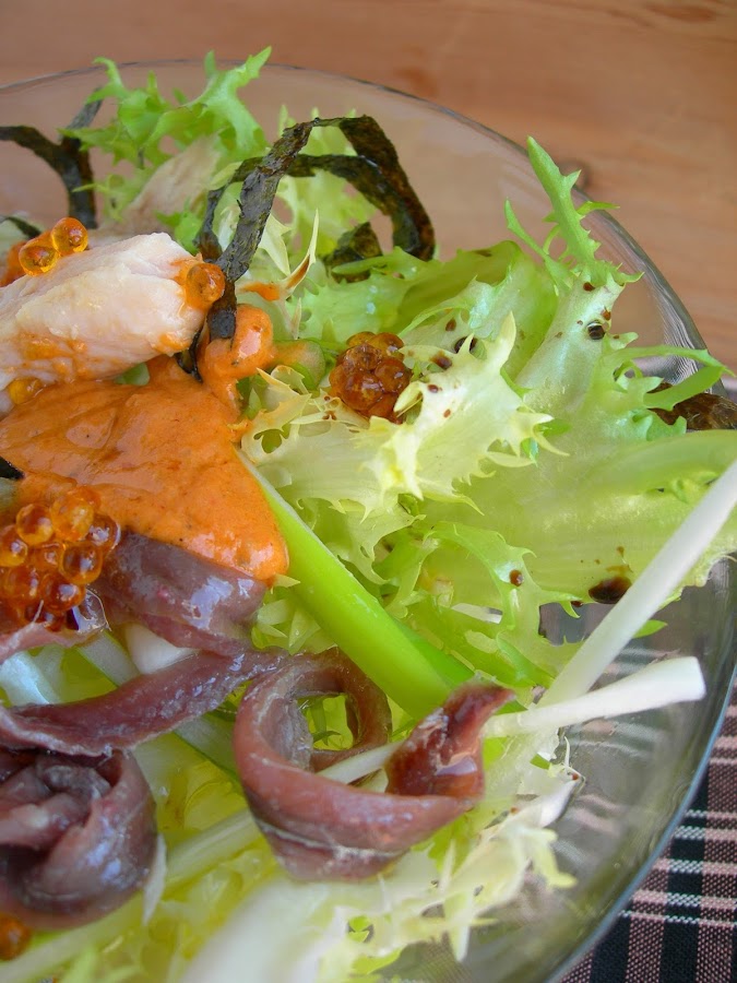 Eso sí, si estás a dieta, sustituye la salsa por una simple vinagreta..que no todas las ensaladas son de dieta ;)