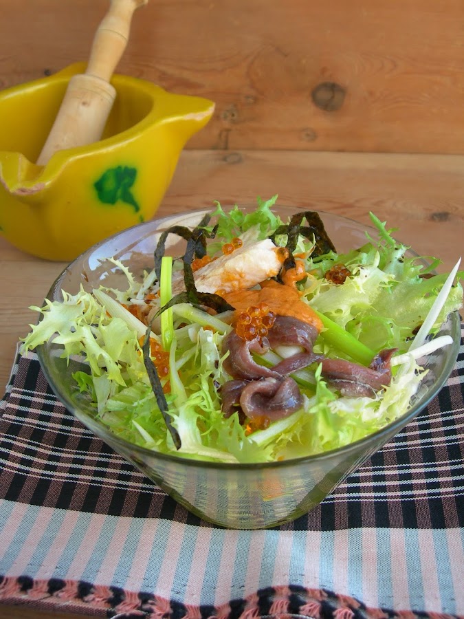 Tanto en la salsa como en la ensalada, podéis cambiar los ingredientes que no os gusten.