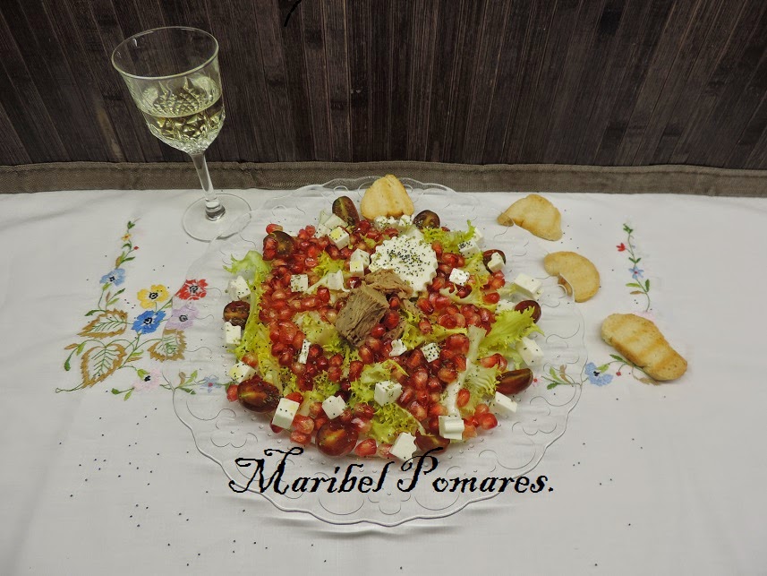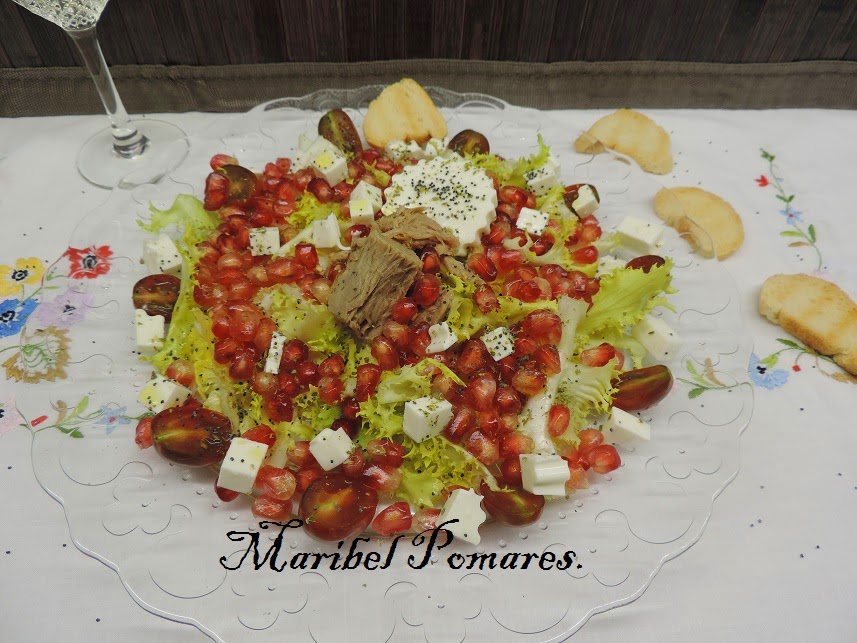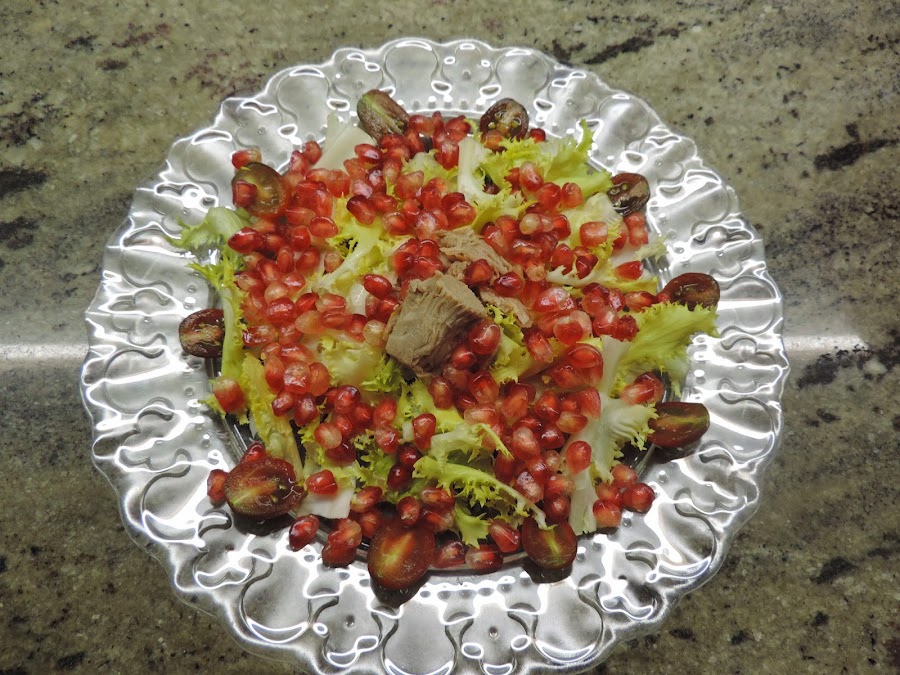 Cortamos los tomatitos y poner en el centro la lata de atún.