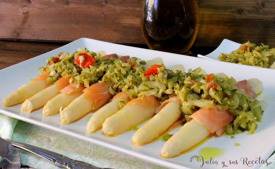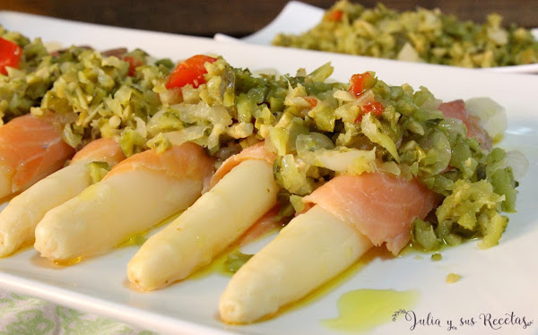 Hoy os traigo una ensalada deliciosa y muy sana, ensalada de espárragos blancos con salmón y vinagreta de encurtidos, muy completa y muy fácil de hacer.