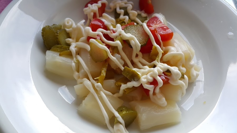 Ya por último añadimos un poco de mayonesa y ya lo tenemos listo para tomar.