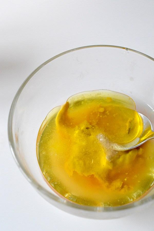 En un cuenco hacemos la vinagreta, con el vinagre, el aceite la mostaza y una pizca de sal, lo probamos y rectificamos si hiciera falta!