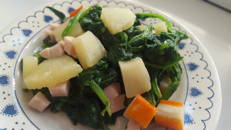 1.- La vamos bien las hojas de las espinacas y una vez escurridas. las cortamos a trozos. También las podéis poner congeladas.