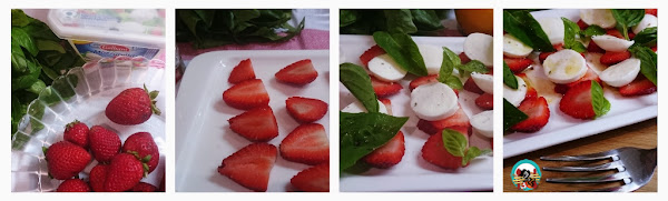 Ensalada de fresas con mozzarella, elaboración: