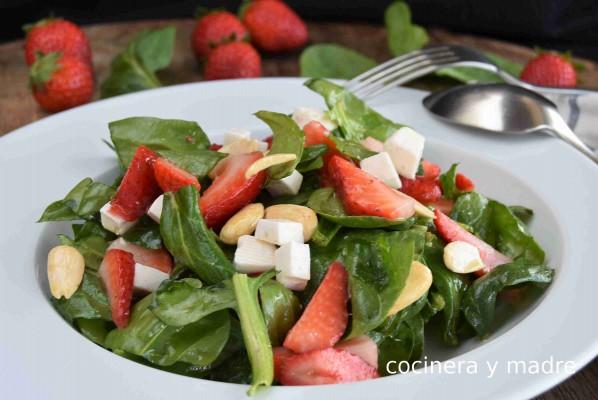 Y nada, ya tenemos una deliciosa ensalada de fresas, espinacas y queso de cabra, de plena temporada, fresca, sana y perfecta para este primavera.