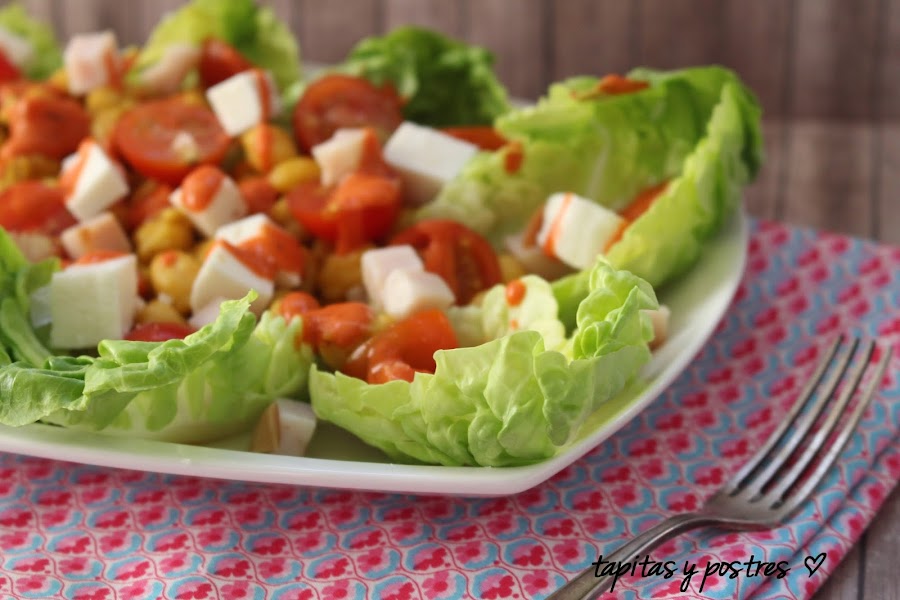 Me encantan las ensaladas, pero no soy yo de ensaladas "raras". No me gustan las ensaladas con frutas, ni con legumbres. pero si algo bueno tiene el llevar un blog de recetas es que tengo que ampliar mi repertorio de comidas.