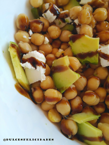 En cuanto vi la propuesta me vino a la mente el aguacate, seguramente por los colores, y por compartir esta fruta el origen con la autora del autoretrato. Enseguida pensé en esta ensalada, en la que además el vinagre de módena le aporta el color del pelo y la indumentaria de la mujer. los garbanzos recuerdan el color de su cara. Y el queso?? el queso es que me encanta!!