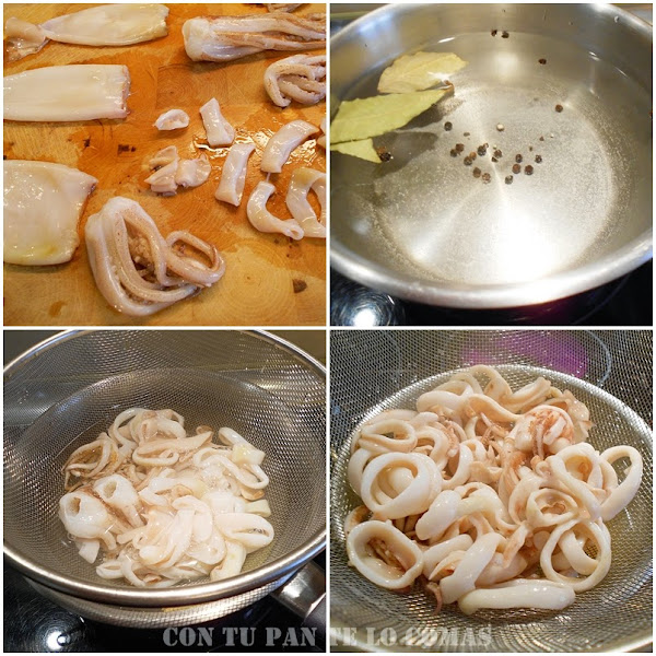 Hay dos formas de hacer los calamares: o los escaldas unos segundos en agua hirviendo o dejas que se hagan lentamente hasta que estén tiernos. Como te puedes imaginar, te traigo la primera opción porque ya sabes que prefiero no complicarme la vida si puedo, y seguro que tú también, a que sí?