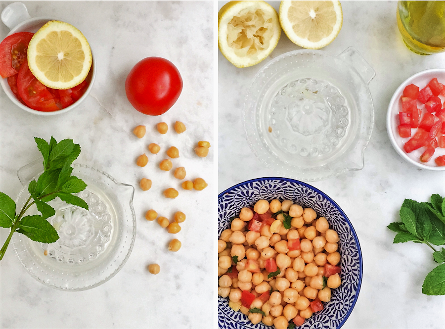 Me encanta esta ensalada de garbanzos por lo sencilla y fácil de hacer que es pero sobre todo por la mezcla de sabores que conseguimos con el toque cítrico del limón y la hierbabuena que hace que se convierta en la opción ideal para las tardes de verano que poco a poco está llegando a sus últimos días así que toca disfrutarlos al máximo