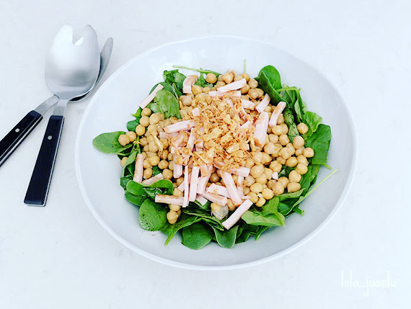 Aunque estamos ya en otoño, aún sigue apeteciendo comer ensaladas y eso es lo que vamos a preparar hoy, una nutritiva y saludable receta que puede ser plato único, acompañamiento o primer plato, una ensalada de garbanzos y espinacas.
