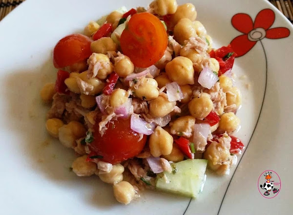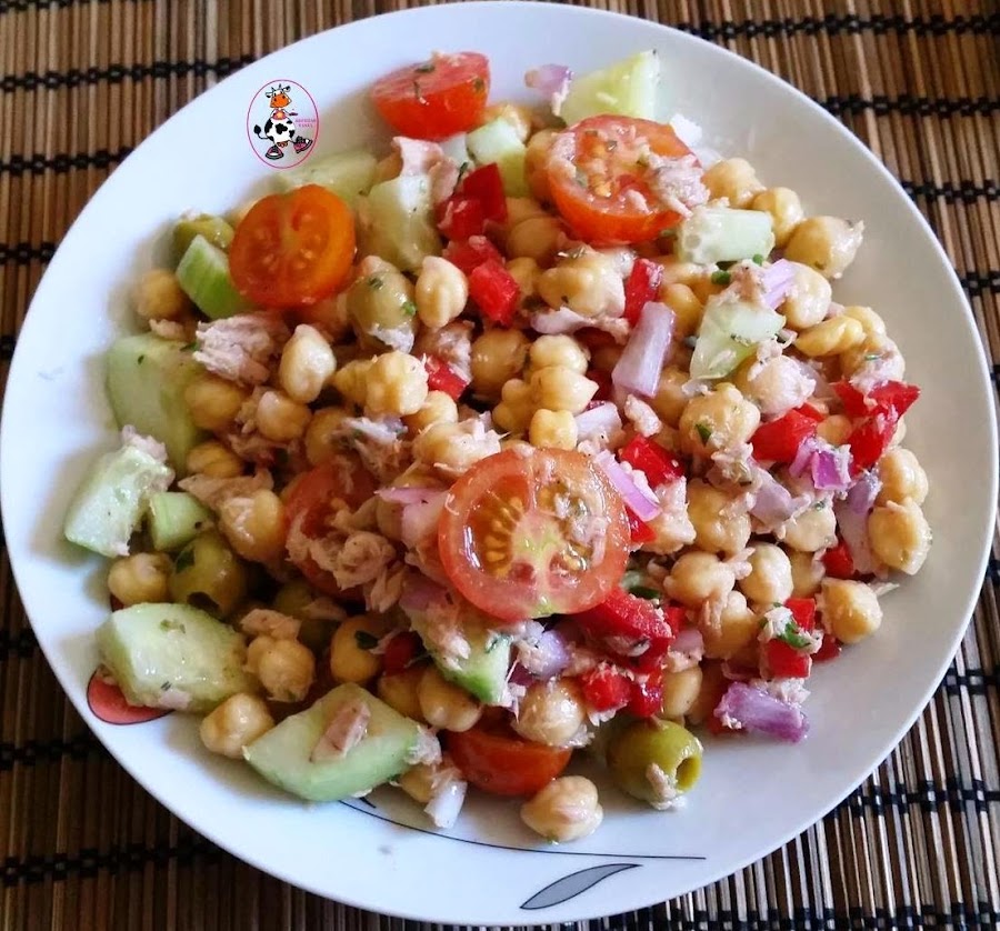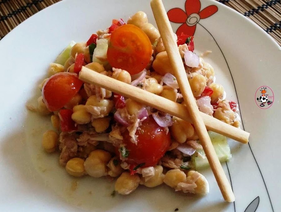 Me encantan las ensaladas pero reconozco que casi siempre las termino haciendo iguales o parecidas y esta ensalada de garbanzos ya la había visto por ahí y me había llamado la atención, así que como me gusta probar cositas nuevas.... Pues aquí esta mi versión de "Ensalada de Garbanzos"... Deliciosa y súper sana!!!