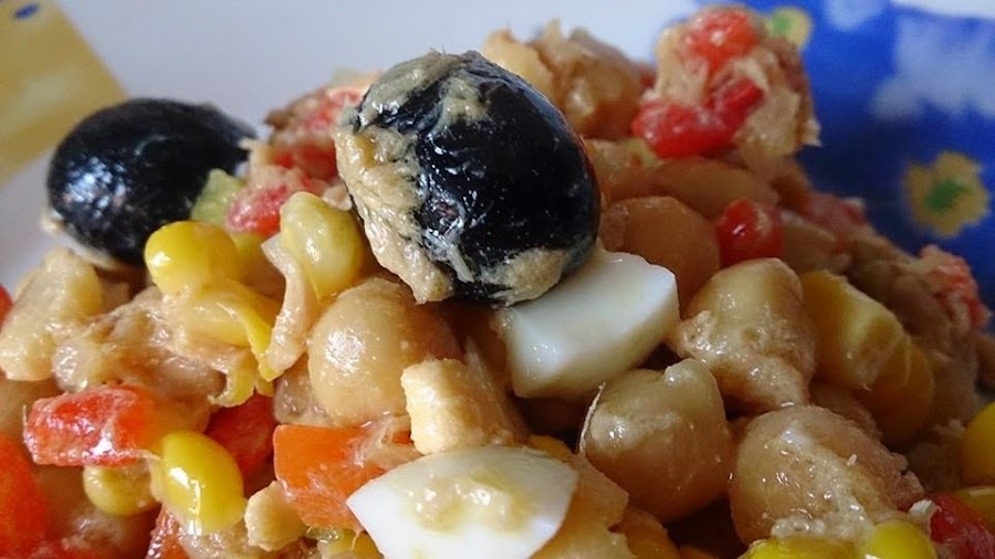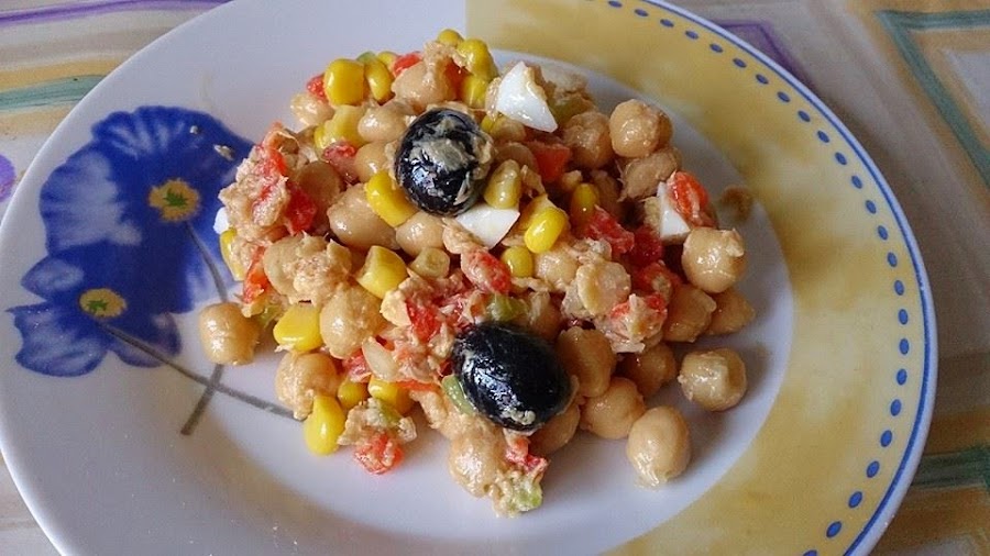 Hoy comimos una ensalada fresquita de garbanzos que estaba deliciosa.