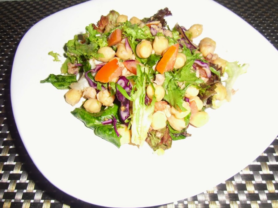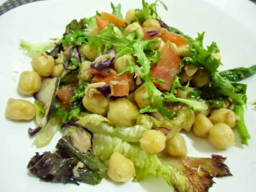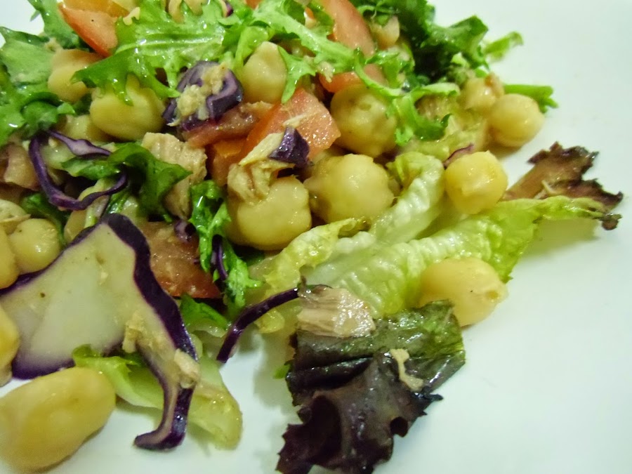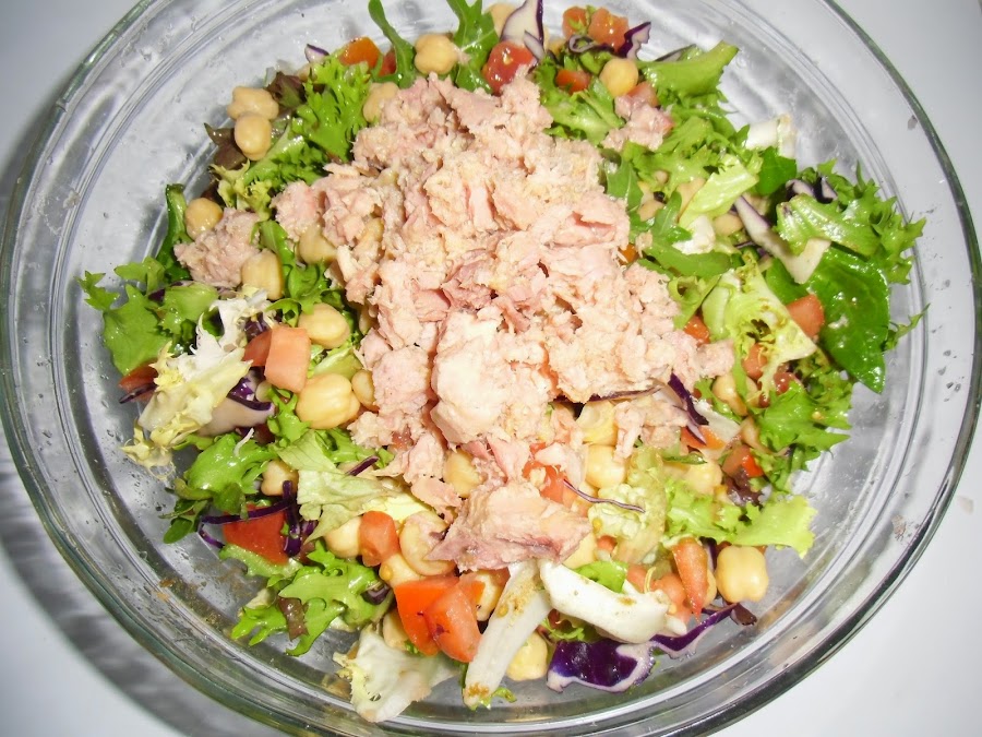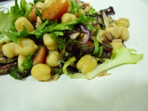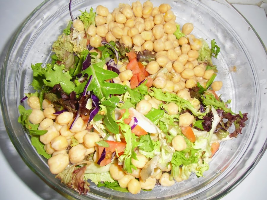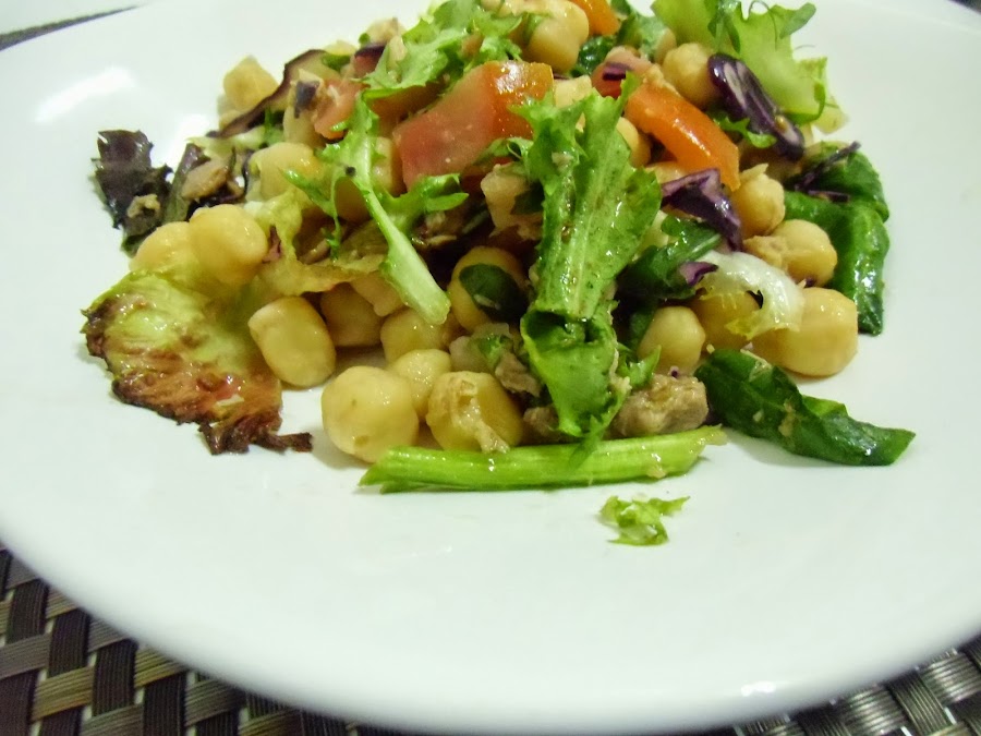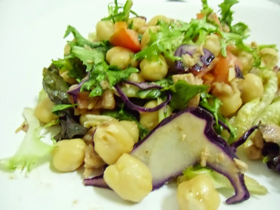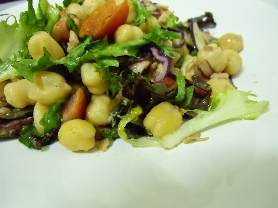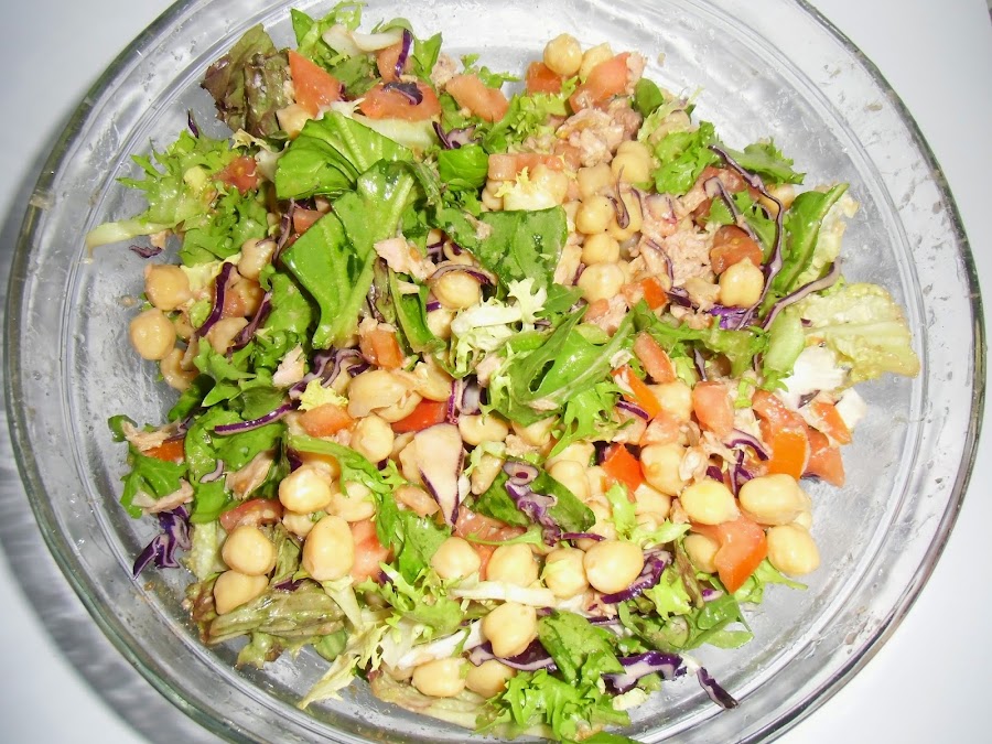 Vamos a preparar una ensalada fresca de garbanzos muy fácil de hacer e ideal para reponer fuerzas estos días de calor.