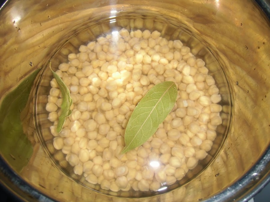 SalDejamos los garbanzos en remojo durante 12 horas, los enjuagamos bien y ponemos en una olla con agua en abundancia, sal y dos hojas de laurel.